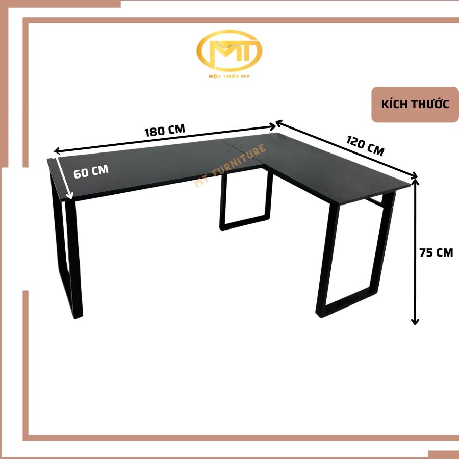 Bàn chữ L là kiểu bàn được thiết kế theo hình chữ L, gồm hai mặt bàn vuông góc với nhau. Thiết kế này thường được đặt sát góc tường để tận dụng tối đa không gian.