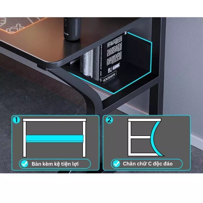 Mặt bàn rộng, đủ đặt Laptop + màn hình phụ + tài liệu + phụ kiện + bàn phím + chuột …