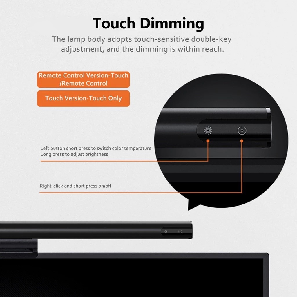 Bạn có thể dễ dàng điều chỉnh nhiệt độ màu và độ sáng của đèn LED thông qua nút cảm ứng trên đèn cũng như điều khiển từ xa qua remote thông minh sao cho phù hợp với nhu cầu sử dụng. Điều khiển từ xa sử dụng công nghệ kết nối 2.4HZ đề điều chỉnh nhiệt độ màu và độ sáng theo ý muốn. Ngoài ra, bộ điều khiển có thể điều khiển cùng lúc 2 đèn cùng lúc, rất tiện lợi nếu bạn sử dụng cùng lúc 2 màn hình.