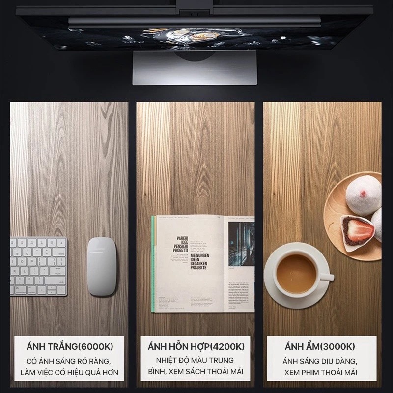 Đèn sẽ có 3 nhiệt độ màu: ánh sáng trắng, ánh sáng ấm và ánh sáng hỗn hợp, đáp ứng mọi nhu cầu sử dụng của người dùng. Để đảm bảo chất lượng tốt nhất, đèn LED gắn màn hình Xiao Ecochain Lymax được làm từ các hạt đèn LED chất lượng cao, giảm thiểu nguy cơ ánh sáng xanh, hạn chế tình trạng đèn nhấp nháy, mang đến ánh sáng ổn định và an toàn cho mắt người sử dụng.