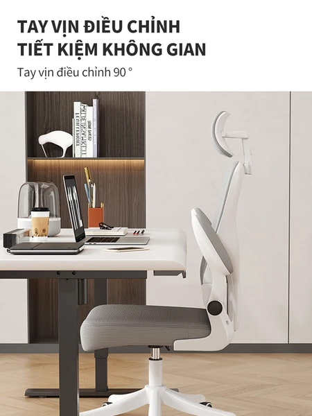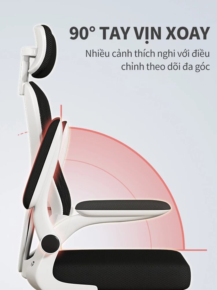 Một chi tiết nhỏ nhưng cực kỳ giá trị của ghế xoay lưới là tay vịn điều chỉnh 90 độ.